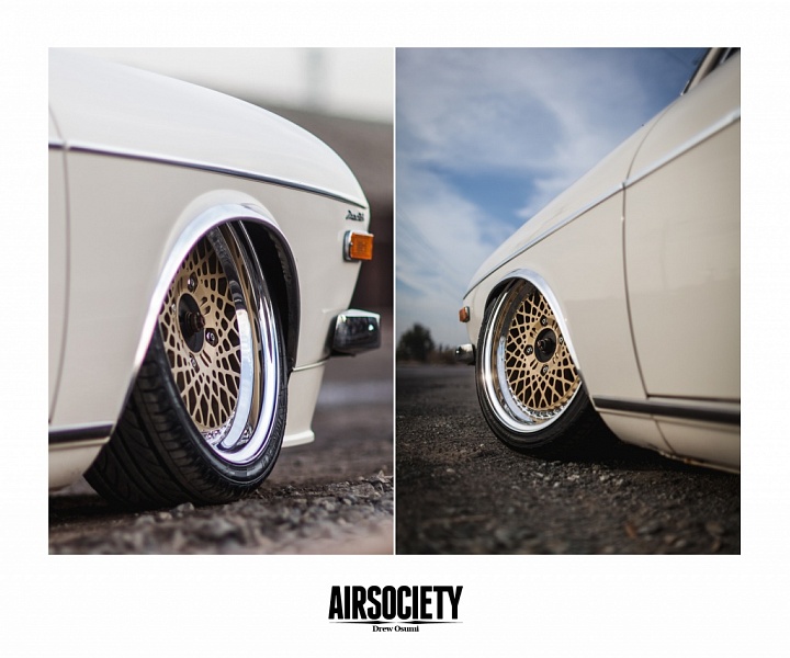Когда Кен мчался домой по автомагистрали с 4-цилиндровым двигателем 1.8L, его сердце не стучало так же часто как с S4, но он пребывал в упоении от совершенно нового чувства свободы. Незамедлительно позвонив в Rotiform, он заказал комплект кастомных дисков, которые подчеркивали бы классические заводские очертания автомобиля. Кованые диски Rotiform LHR с порошковой покраской центров под золото в размерах 17×7 дюймов были изготовлены специально для его новой сотки и неожиданно оказались большим хитом, чем он мог мечтать. Оставалось найти способ корректировать высоту автомобиля так, чтобы эти диски не раздавили ему крылья.