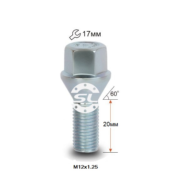 Болт для железных дисков ВАЗ, ГАЗ, Fiat, Lancia М12x1.25x20мм Конус Цинк Ключ 17