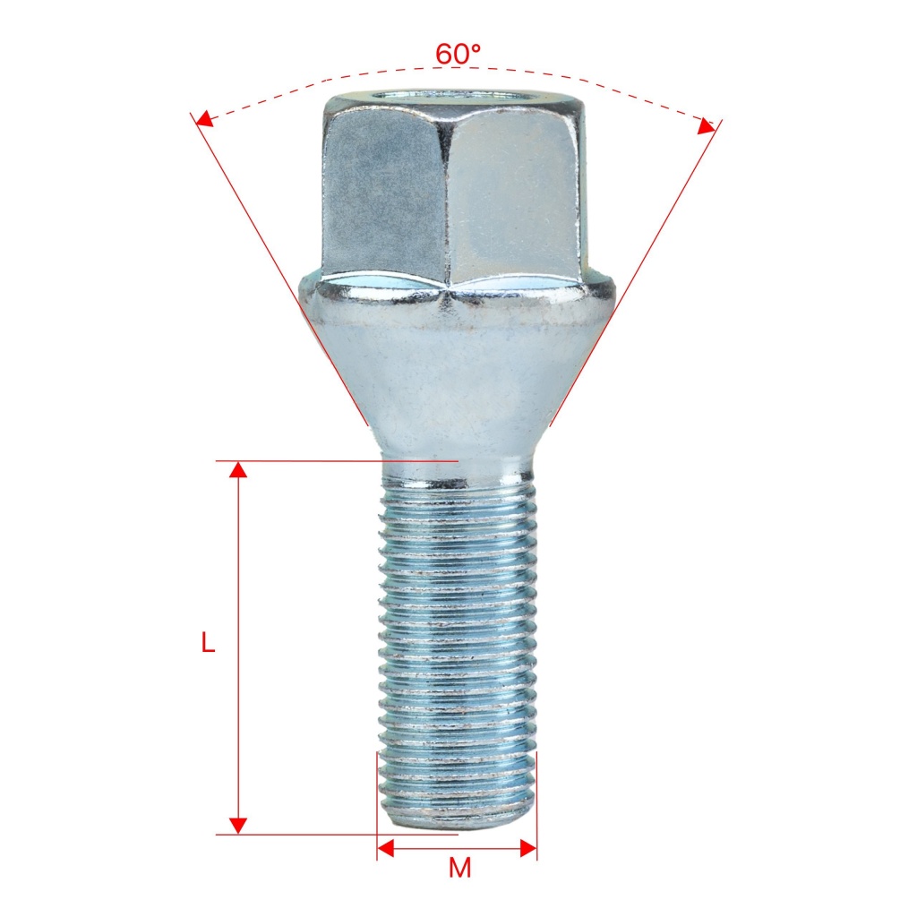 Колесные болты M12x1.25x27mm с конусной посадкой для дисков