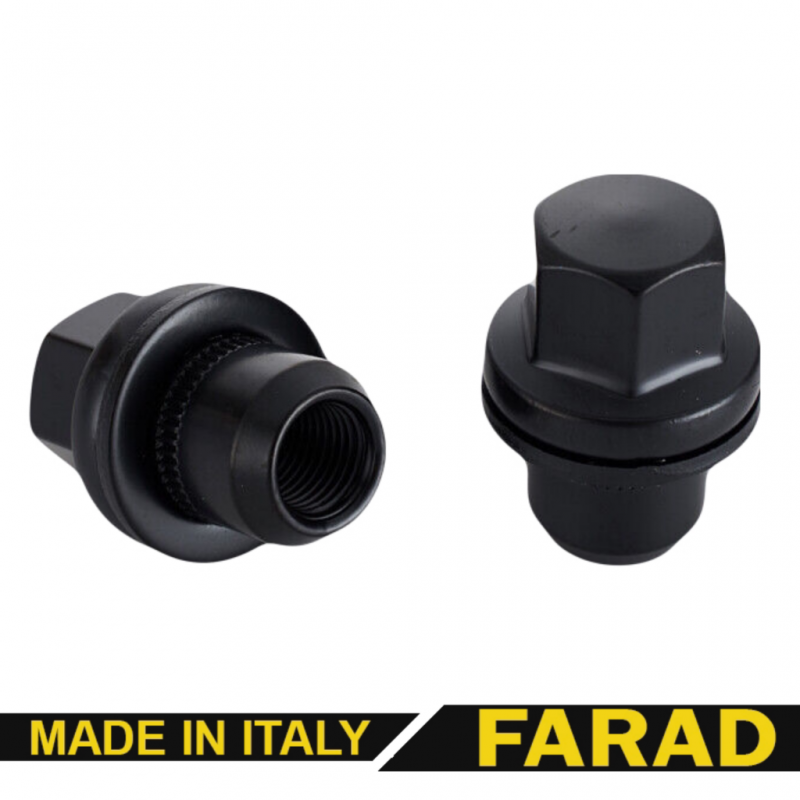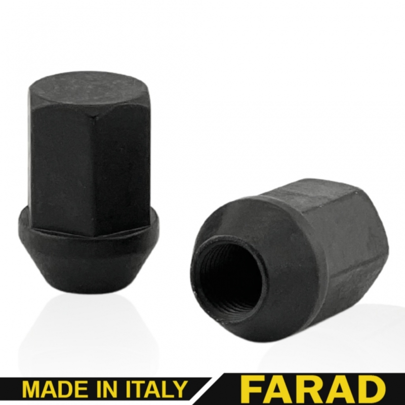 Гайка колесная М14x1,5x46мм Прессшайба Ключ 22 (Land Rover) под оригинальные диски Черная Farad Италия
