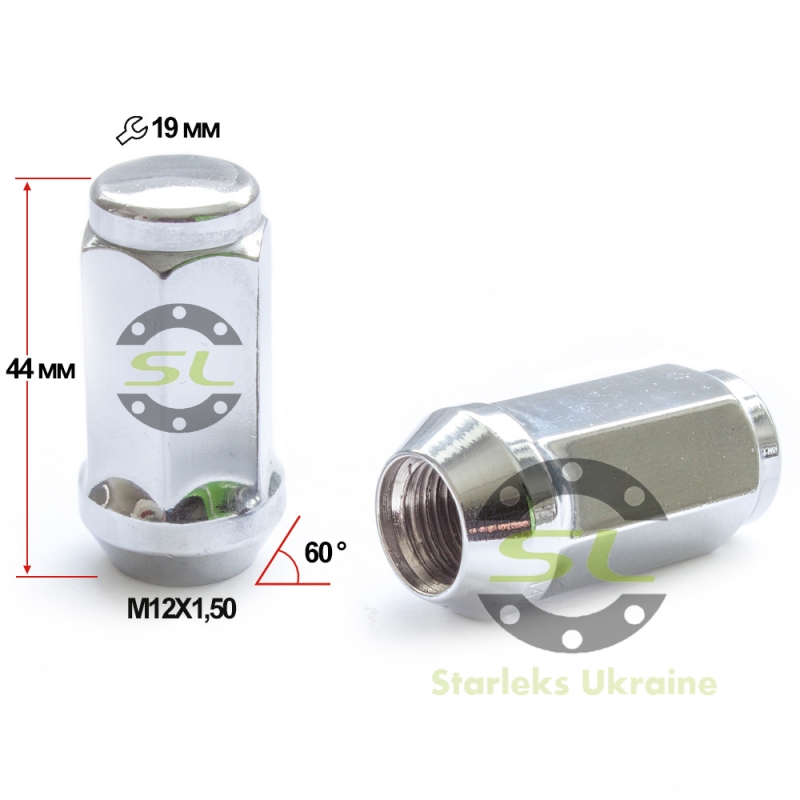 Гайка M12*1,5*44 мм Конус Хром Ключ 19
