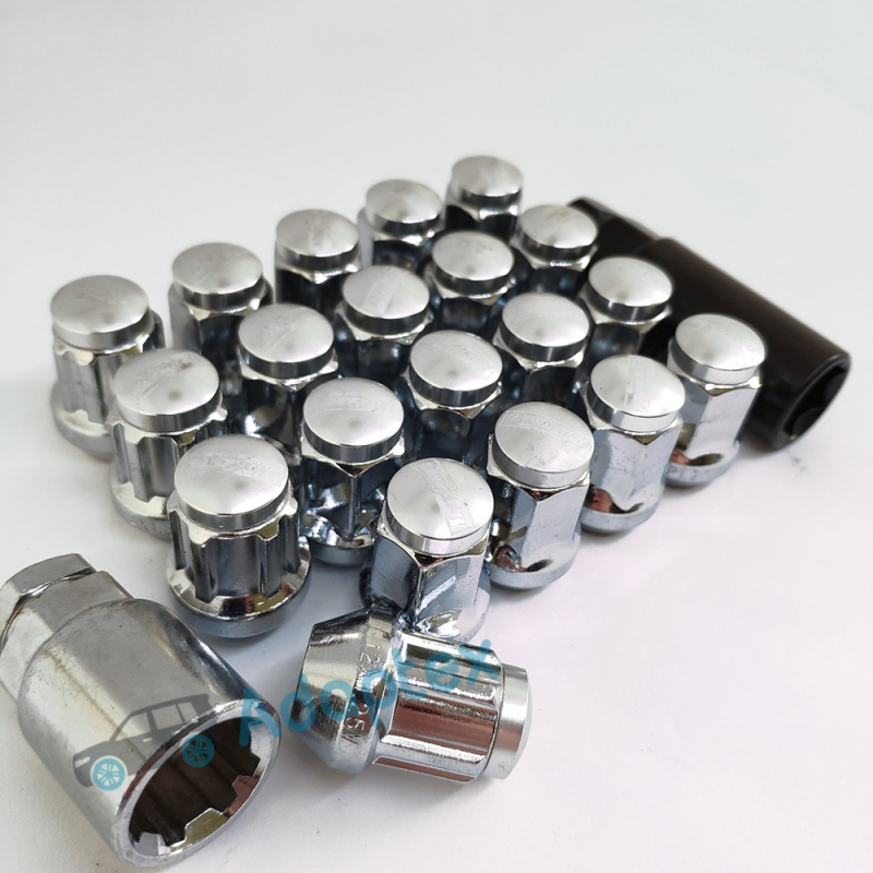 Набор гаек с секретками M12*1,5*34мм 16 гаек + 4 секретки под ключ 19 и 21 (Серебряные)