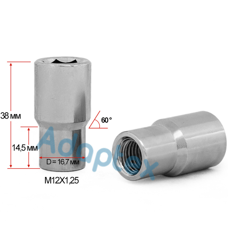 Гайка M12x1,25x47 мм Прессшайба D-18.5 Хром Ключ 21