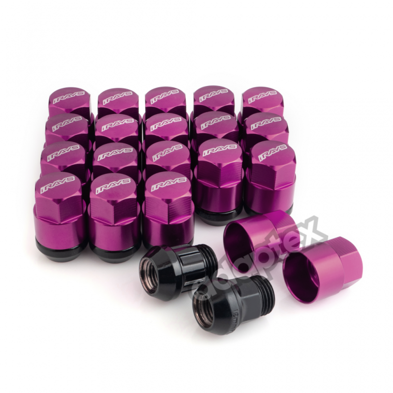 Набор гаек для дисков M12x1,25x35mm Конус Фиолетовые Ключ 17 (16+4 секретки) алюминиевые колпачки + 3 ключа