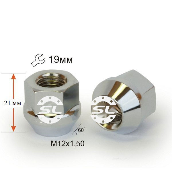 Гайка колесная М12x1,5x35мм Конус Хром Ключ 19 (Chevrolet, Citroen, Daihatsu, Hyundai, Kia, Mazda, Peugeot, Toyota, Lexus) с закругленной головкой
