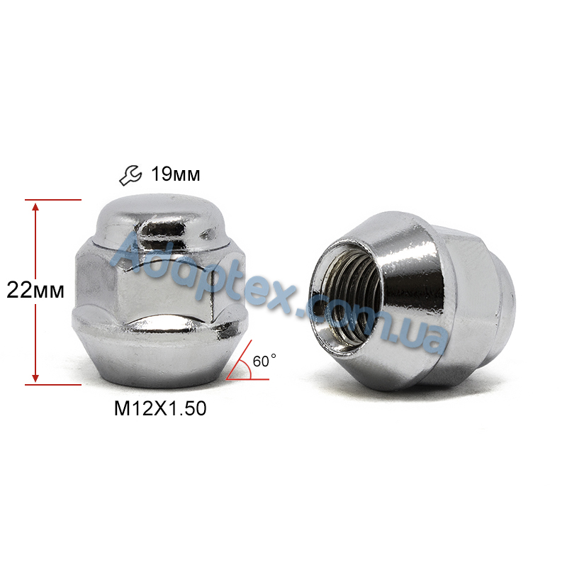 Гайка колесная М12x1,5x16мм Конус Chevrolet, Ford (под железные диски) Ключ 19