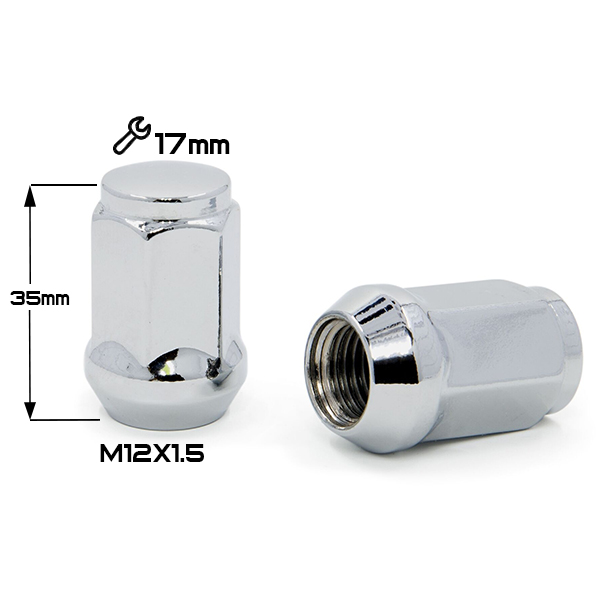 Гайка колесная М12x1,5x35мм Конус Хром Ключ 17 (Chevrolet, Citroen, Daihatsu, Hyundai, Kia, Mazda, Peugeot, Toyota, Lexus) для узких отверстий в диске