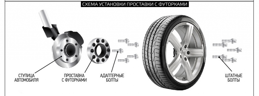 В набор входят качественные адаптерные гайки, которыми крепятся проставки. Колеса прикручиваются штатным крепежом.Колесные проставки изменяют положение колеса относительно кузова, тем самым дают возможность установить не подходившие ранее диски и резину. Они позволяют расширить колесную базу вашего авто, благодаря чему авто приобретает улучшенные характеристики при прохождении поворотов и повышенную устойчивость на больших скоростях. Также, не следует забывать и про эстетичный вид. Машина приобретает более агрессивный и спортивный дизайн.