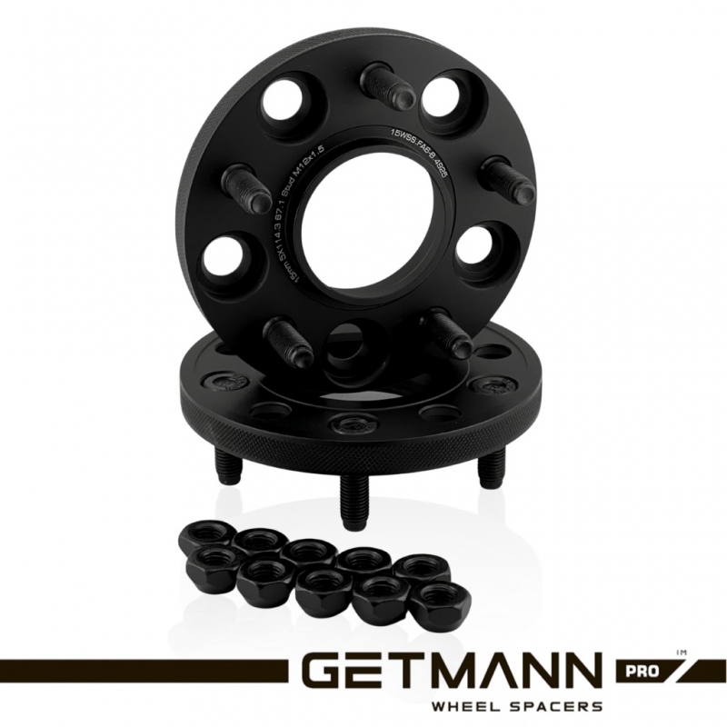 GETMANN | Колесная проставка-адаптер 15мм PCD 5х114.3 DIA 67.1 со шпильками 12x1.5 для Citroen, Dodge, Geely, Hyundai, Mazda, Mitsubishi, Peugeot (Кованая)