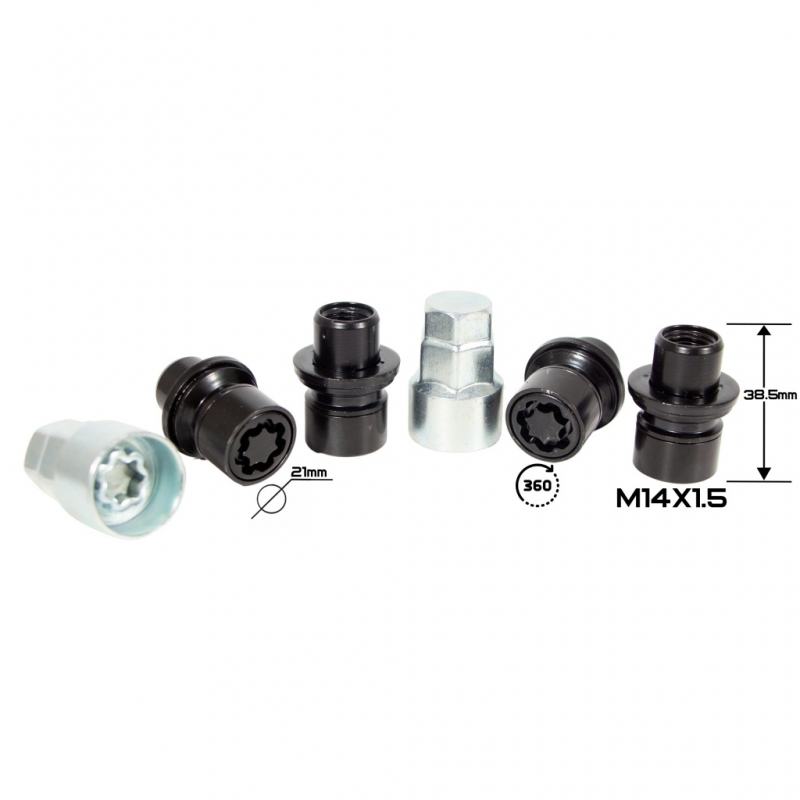 Гайки секретки М14х1.5х38,5мм Прессшайба Вращающееся кольцо Ключ 21 (для оригинальных дисков Toyota/Lexus)