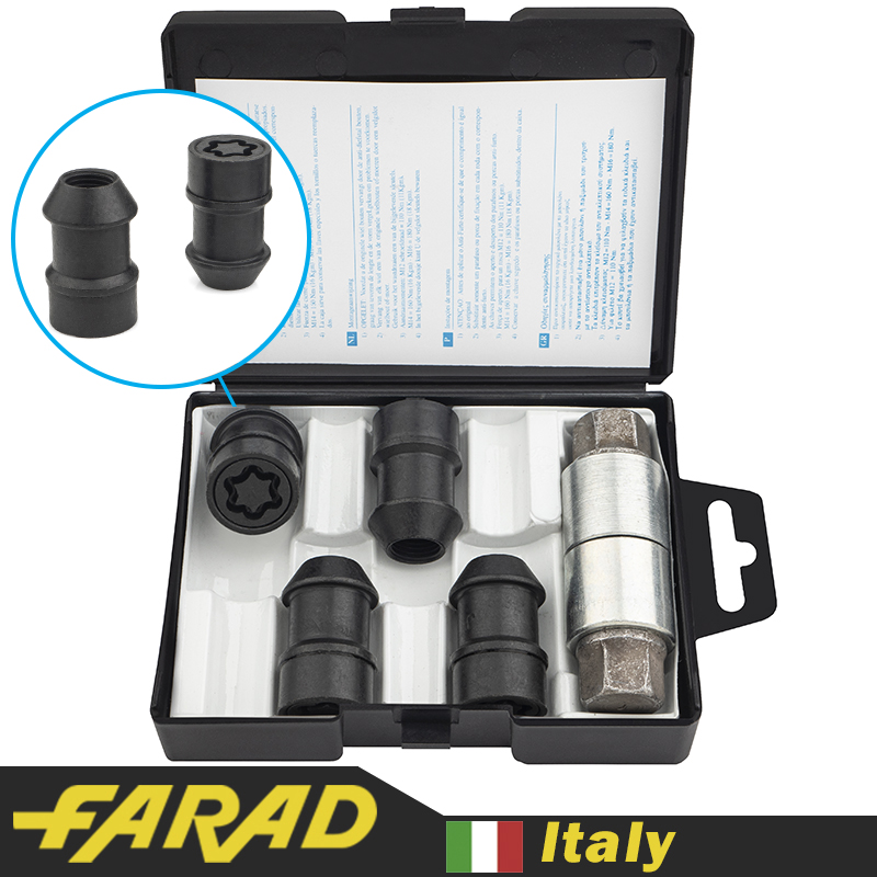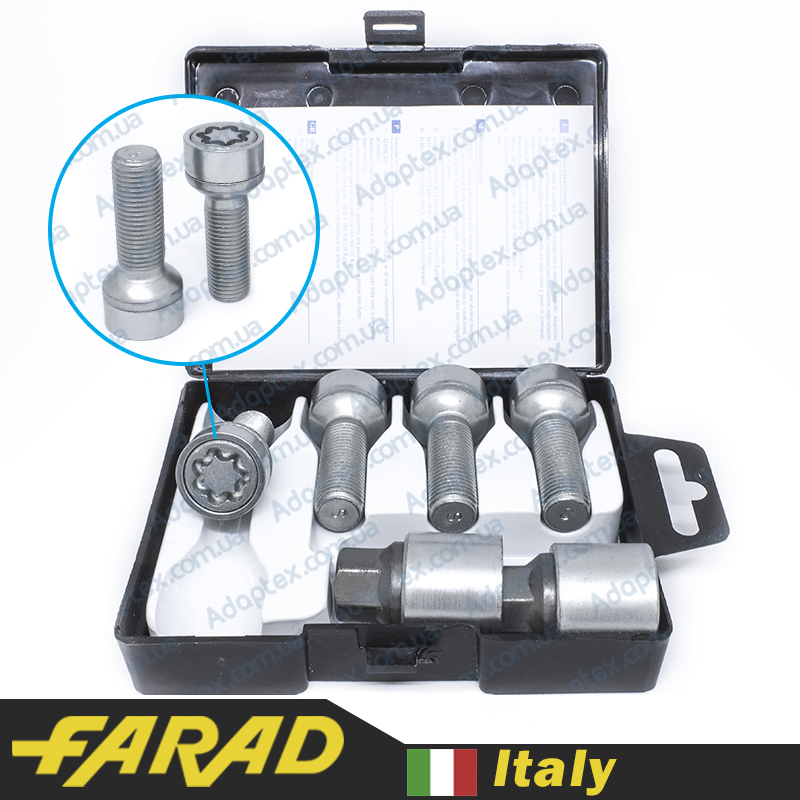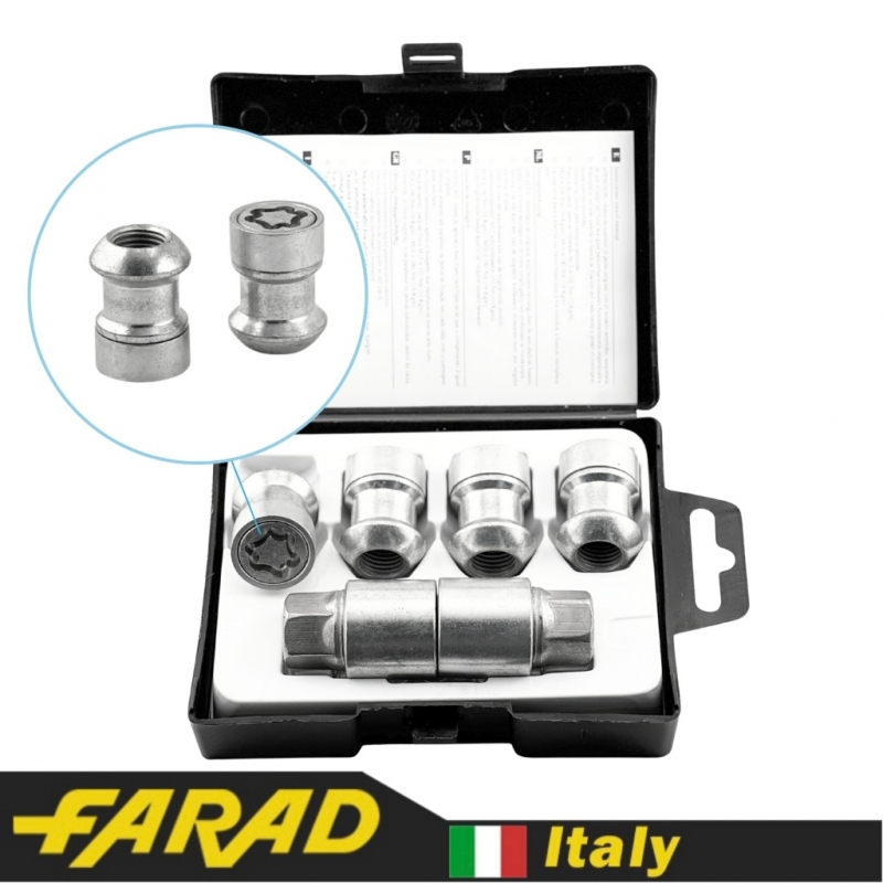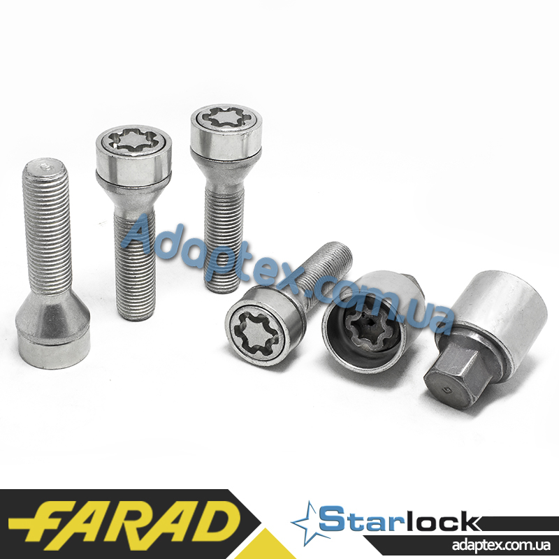 FARAD STARLOCK | Болты секретки М14х1.5х45мм Конус Вращающееся кольцо Ключ 17 (BMW, Citroen, Renault, Volvo) под проставки 15-20мм + запасной ключ