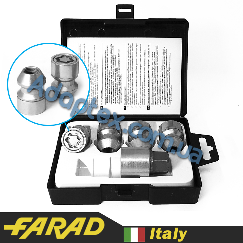 FARAD STARLOCK | Гайки секретки М1/2-20x34мм Конус Вращающееся кольцо Ключ 19 (Ford, Jeep, Jaguar, Chevrolet, Dodge, Volvo) + запасной ключ