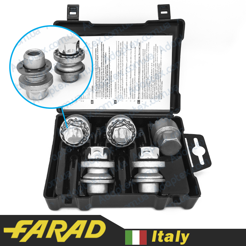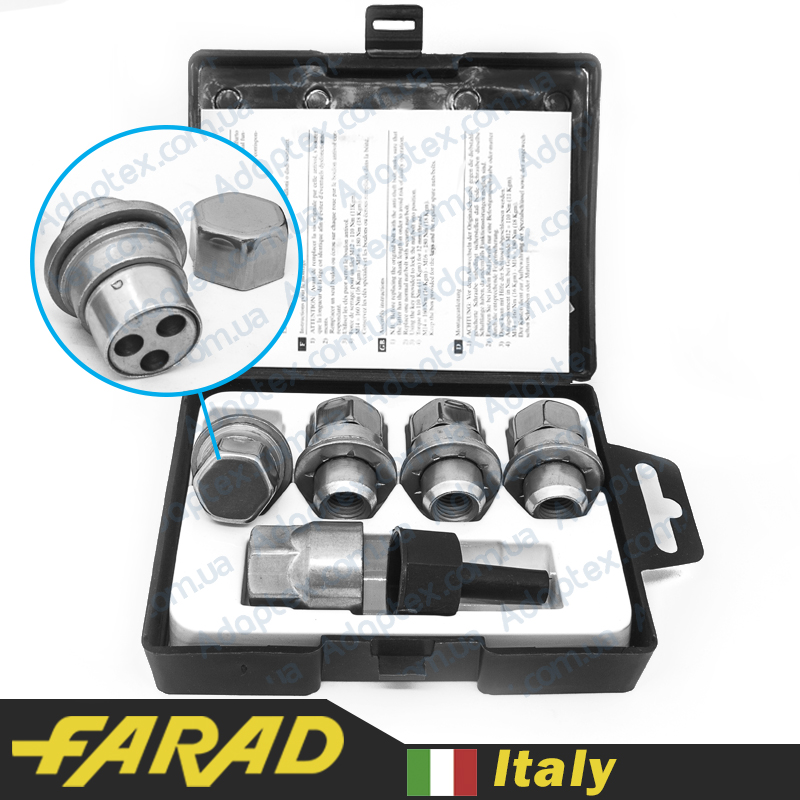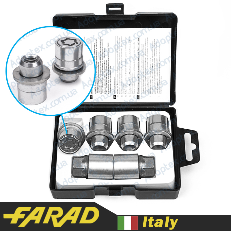 FARAD STIL BULL | Гайки секретки М12х1.5х36мм Прессшайба Вращающееся кольцо (Citroen, Lexus, Mitsubishi, Peugeot, Toyota) ключ 21 + стальные колпачки