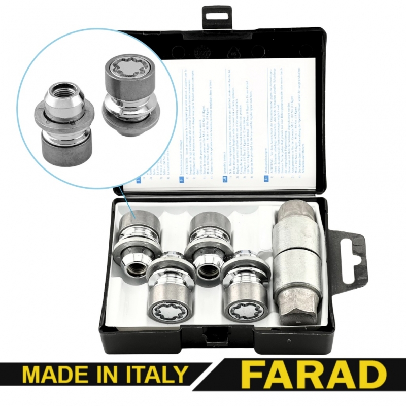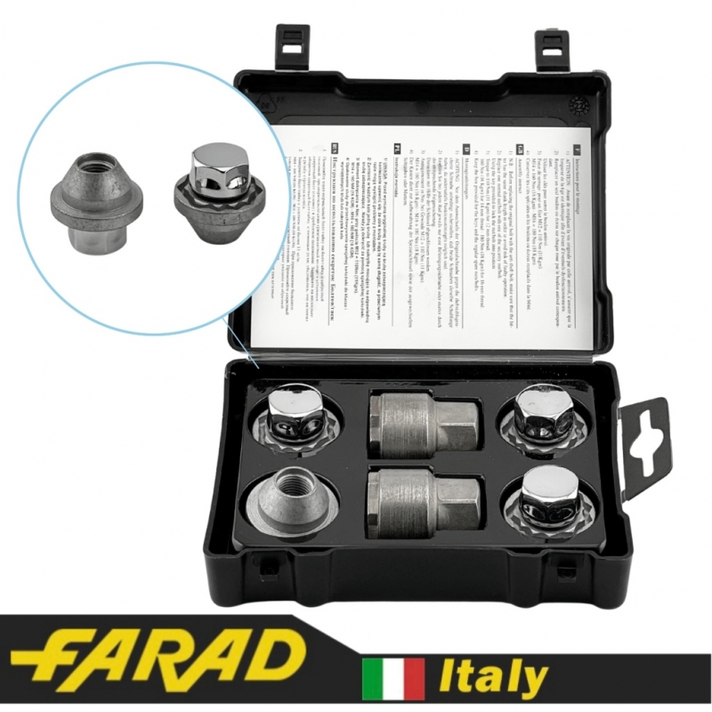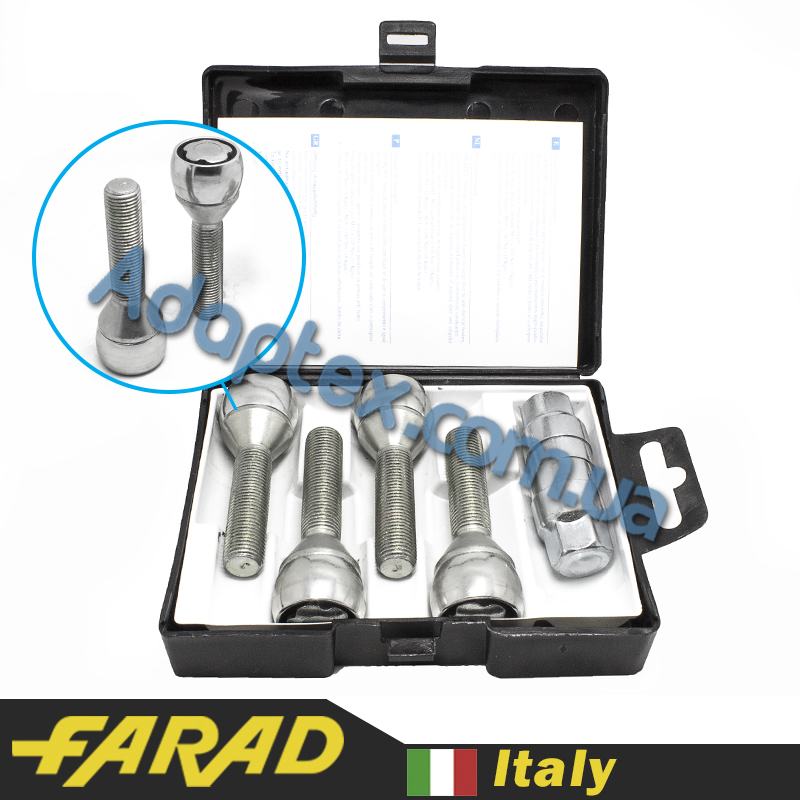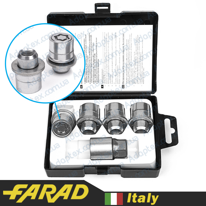 FARAD STARLOCK | Болты секретки М12x1.25x45мм Конус Вращающееся кольцо (ВАЗ, ГАЗ, Fiat, Lancia, Citroen, Peugeot, Volvo) удлиненные под проставки 15-20мм + запасной ключ