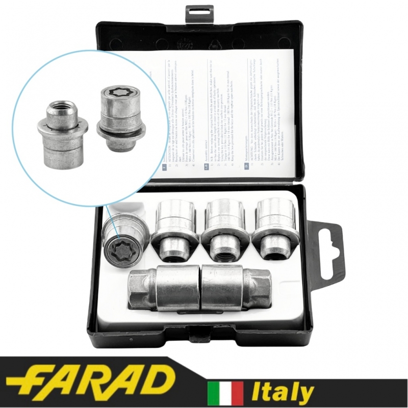 FARAD STARLOCK | Гайки секретки М12х1.5х36мм Прессшайба Вращающееся кольцо (Citroen, Lexus, Mitsubishi, Peugeot, Toyota) + запасной ключ под 21