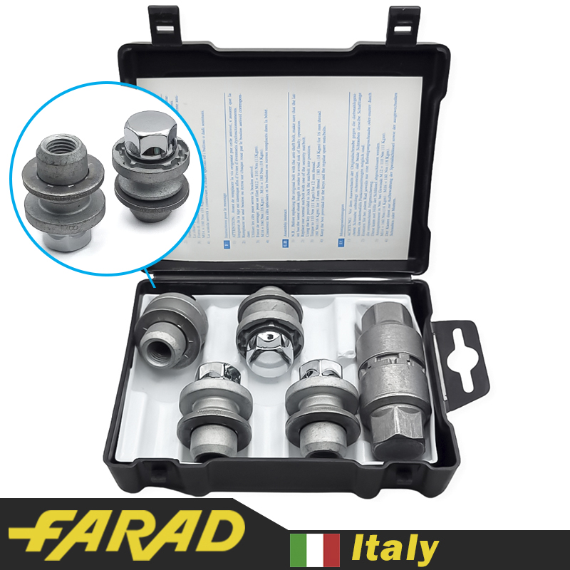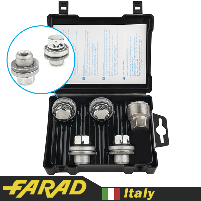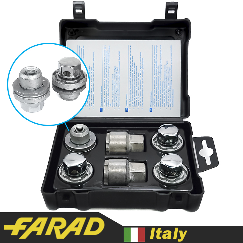FARAD FLOWERLOCK | Болты секретки М12x1.25x45мм Конус Вращающееся кольцо (ВАЗ, ГАЗ, Fiat, Lancia, Citroen, Peugeot, Volvo) удлиненные под проставки 15-20мм + запасной ключ под 17