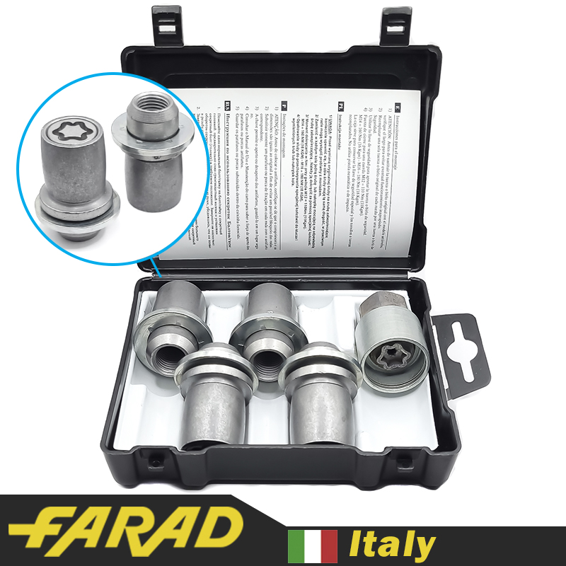 Оригинальные секретки Farad изготовляются на заводе в Италии. В данном комплекте представлено 4 гайки с индивидуальным секретным рисунком и ключом к ним. Внутри упаковки содержится специальный код для возможности восстановления ключа при его потере.