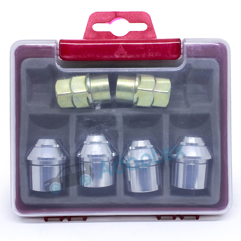 В набор секреток входит 4 секретных гайки с вращающимся антивандальным кольцом на головке, 2 спец ключа под головку диаметром 19 и 21;