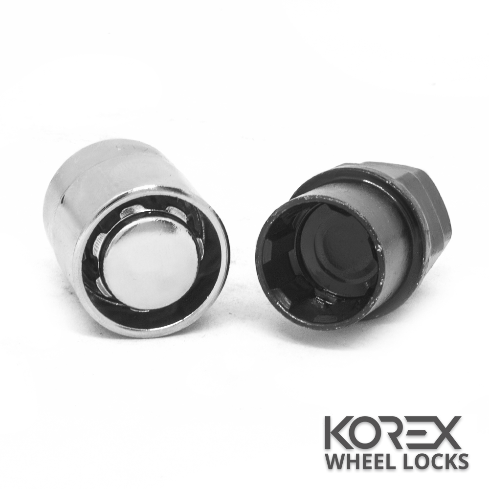 В набор секреток Korex входит 4 секретных гайки с вращающимся антивандальным кольцом на головке, 2 спец ключа под головку диаметром 19 и 21, а также 4 защитных колпачка.
