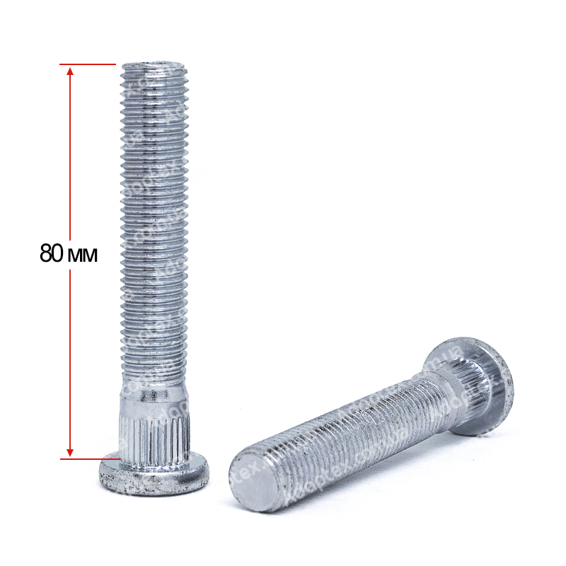 Колесная вкручиваемая шпилька резьбовая М12x1,5x15мм/М12x1,5x60мм (Общая длина 80мм) с направляющим наконечником