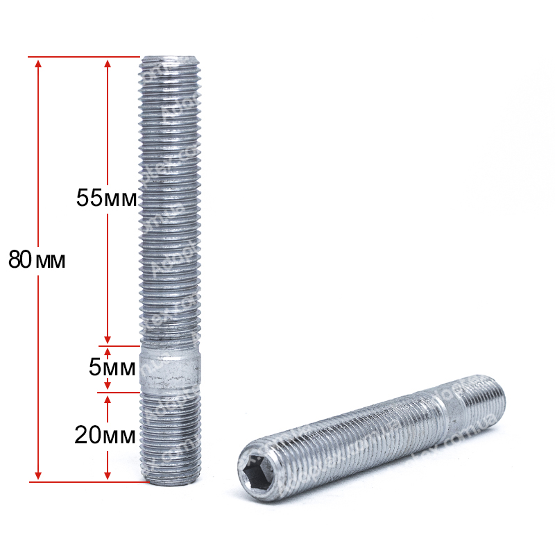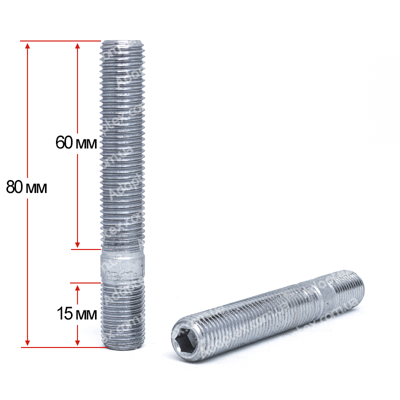 Колесная вкручиваемая шпилька резьбовая М12x1,5x20мм/М12x1,5x60мм (Общая длина 80мм)