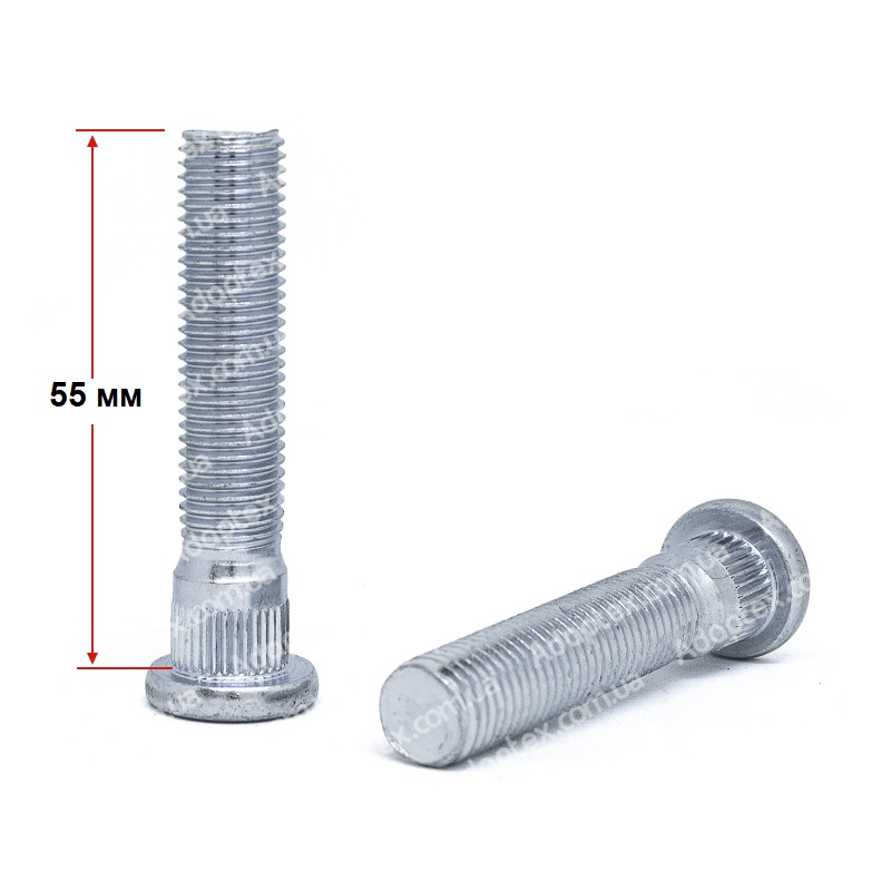 Колесная шпилька с забивной частью 14,40мм 12x1,25x55мм (Subaru, Nissan, Infiniti) Удлиненная для проставок 10-15мм