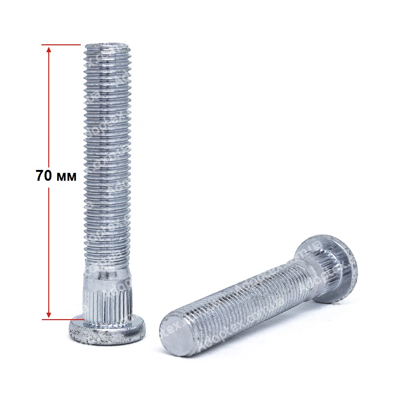 Колесная шпилька с забивной частью 14,40мм 12x1,25x70мм (Subaru, Nissan, Infiniti) Удлиненная для проставок 20-25мм