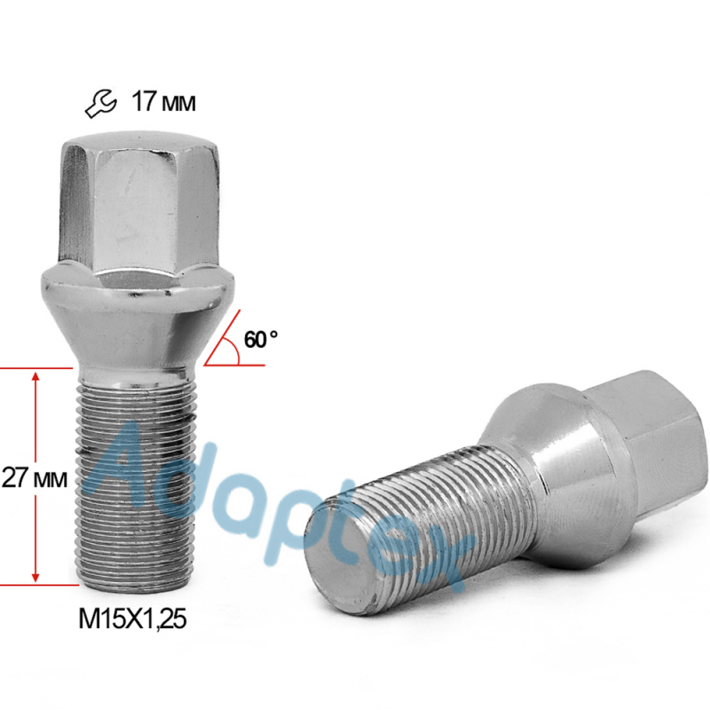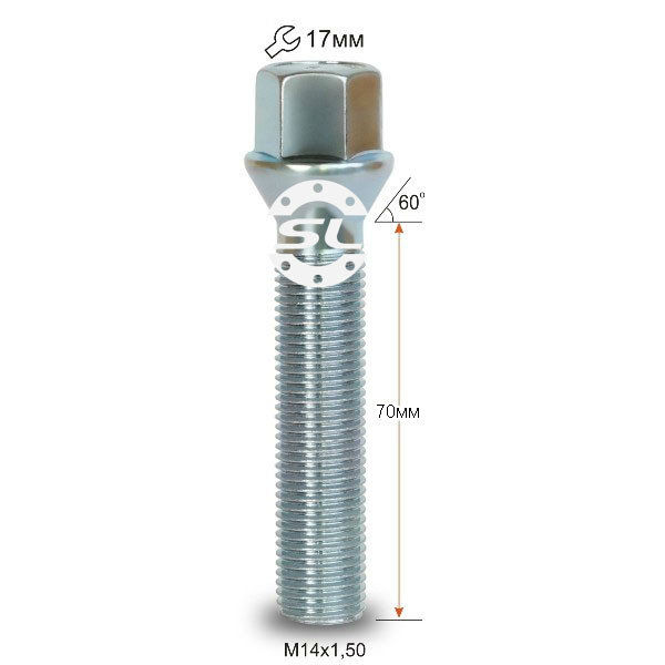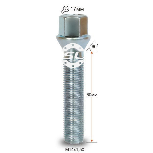 Болт колесный М14x1.5x60мм Сфера Цинк Ключ 17 (Audi, Seat, Skoda, Volkswagen) Удлиненный