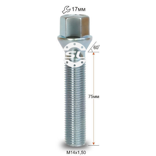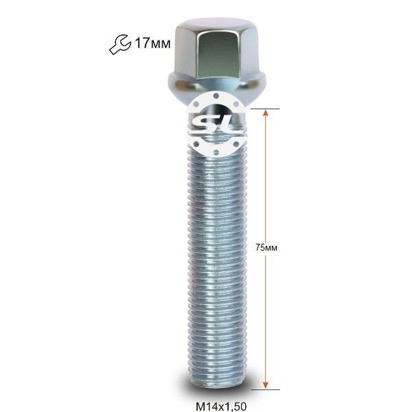 Болт колесный М14x1,5x75мм Сфера Цинк Ключ 17 (Удлиненный)