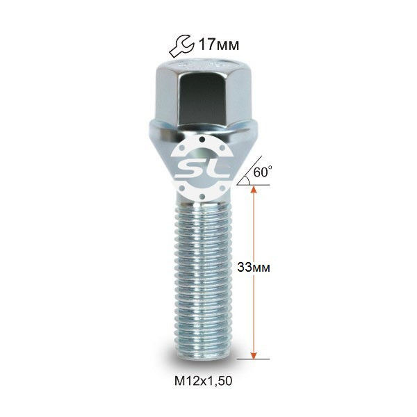 Болт колесный М12x1.5x40мм Сфера Цинк Ключ 17 Mercedes-Benz (A, C, CLC, CLK, E, SL, SLK, Vaneo, 190, 200) неполная резьба