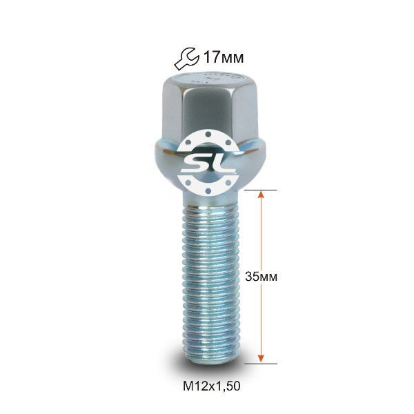 Болт колесный М12x1.5x35мм Сфера Цинк Ключ 17 (Audi, Mercedes-Benz, Seat, Skoda, Volkswagen) Удлиненный