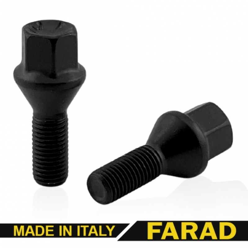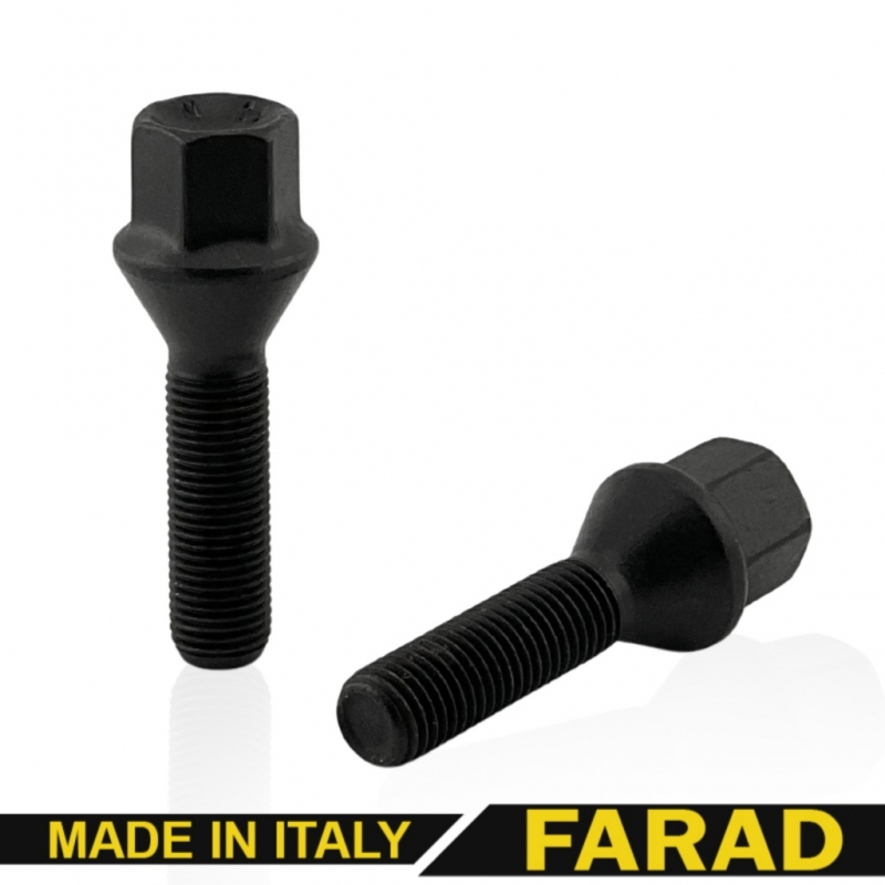 Болт колесный М12x1,5x28мм Конус (BMW, Dacia, Daewoo, Opel, Renault) Черный цинк Ключ 17 FARAD (Италия) под литые диски