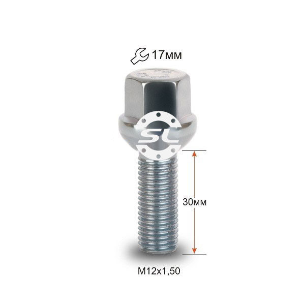 Болт колесный М12x1.5x30мм Сфера Хром Ключ 17 (Audi, Mercedes-Benz, Seat, Skoda, Volkswagen)