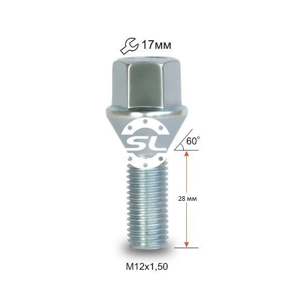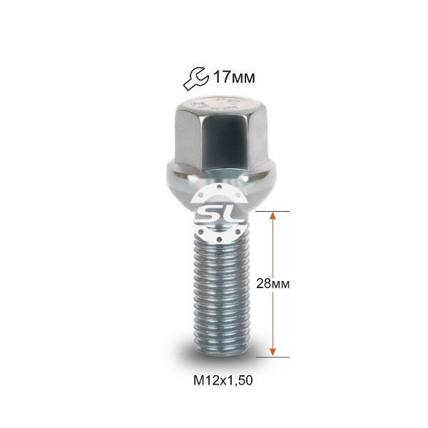 Болт колесный М12x1.5x28мм Сфера Цинк Ключ 17 (Audi, Mercedes-Benz, Seat, Skoda, Volkswagen)