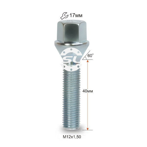 Болт колесный М12x1.5x40мм Конус Цинк Ключ 17 (BMW, Daewoo, Fiat, Nissan, Opel, Renault) Удлиненный