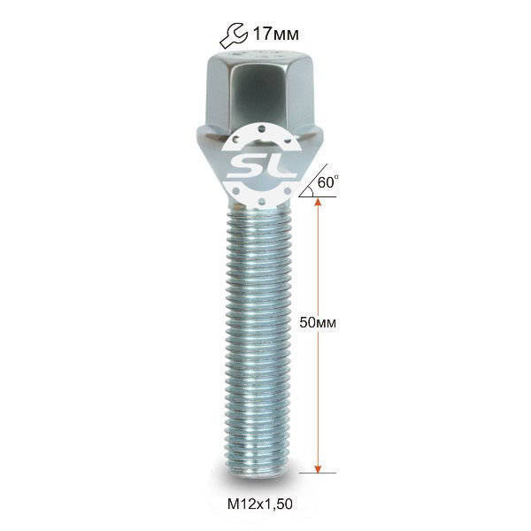 Болт колесный М12x1.5x50мм Конус Цинк Ключ 17 (BMW, Daewoo, Fiat, Nissan, Opel, Renault) Удлиненный