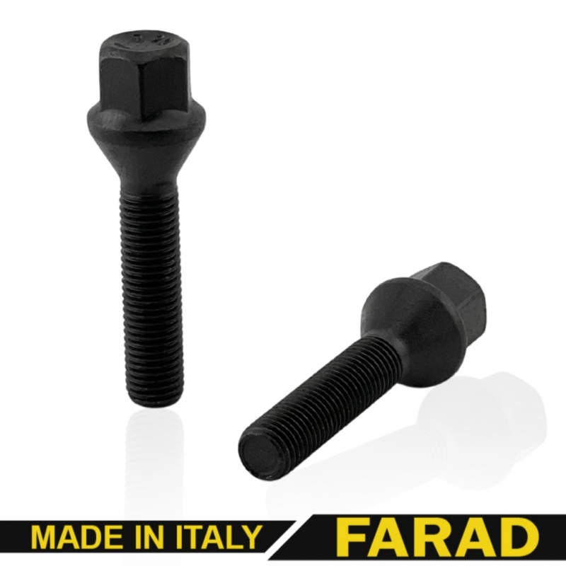 Болт колесный М12x1.5x50мм Конус Чёрный цинк Ключ 17 FARAD (Италия) Удлиненный
