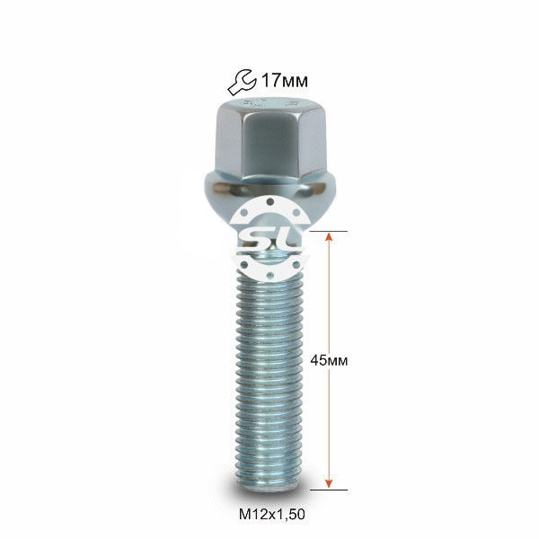 Болт колесный М12x1.5x45мм Сфера Цинк Ключ 17 (Audi, Seat, Skoda, Mercedes-Benz Volkswagen) Удлиненный